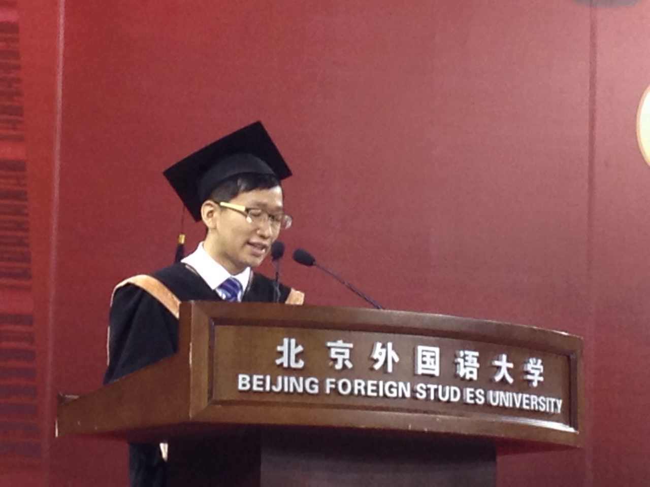 四年,感谢母校北外。的确,就面积而言,有太多大学领先我们。但是,正是这不算大的校园却为我们搭建了尽情张扬青春的舞台。挥洒汗水的球场、体育馆,施展才华的学生组织、各类社团。我们在晨读园背书,在小碧池讨论对话,我们在图书馆备战考试周,在千人礼堂感受栀子花开,在阿语楼目睹校友风采,听他们倾吐着“国际视野”背后的“中国情怀”。