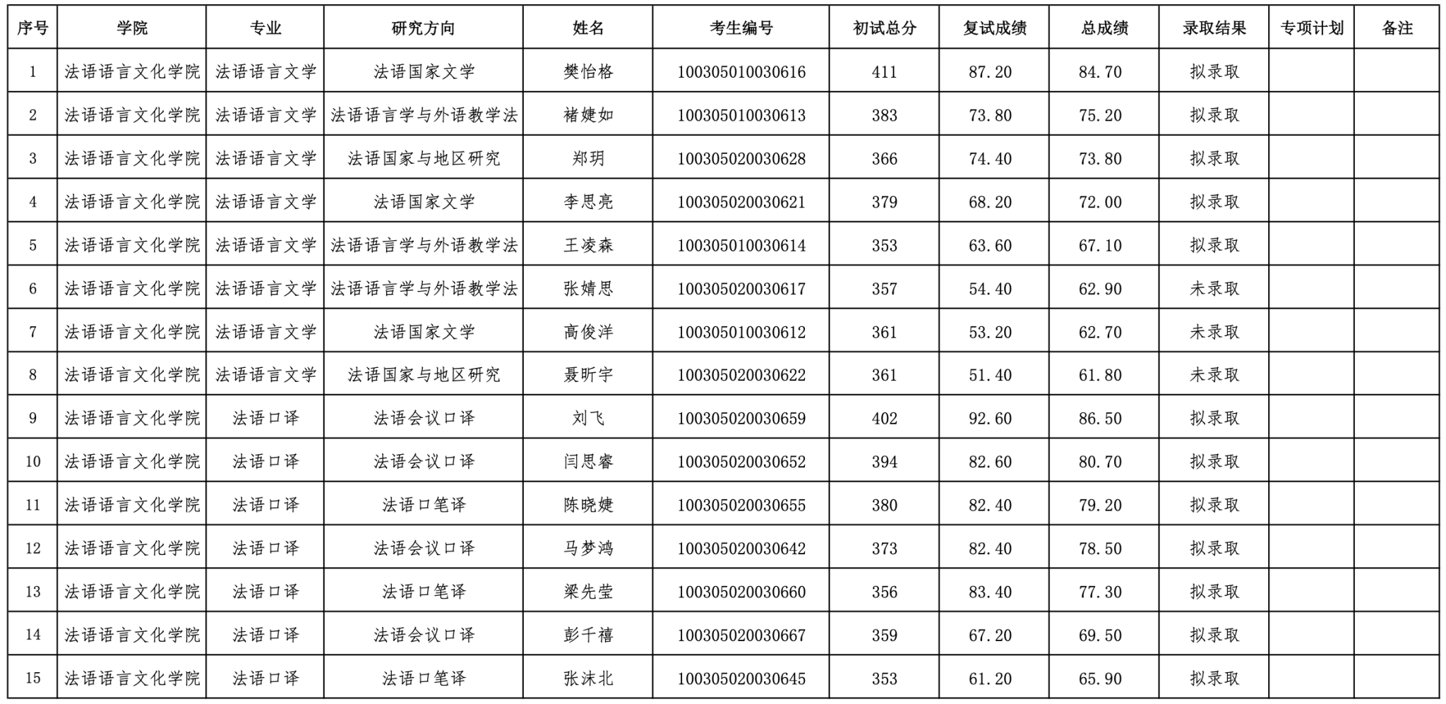 太阳成集团tyc234cc[主页]网址法语语言文化学院2025年硕士生统考录取结果