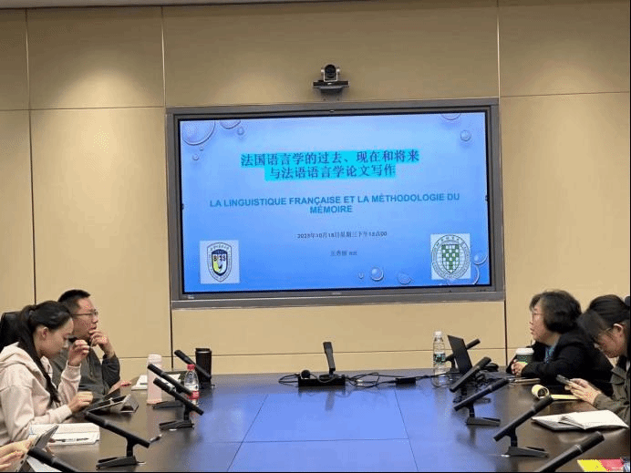 10月18日下午,北京语言大学博士生导师、法语系主任,教育部高等教育外语教育指导委员会法语分委会委员王秀丽教授应邀来校,在东院暮思厅为北外学子做了题为“法国语言学的过去、现在和将来与法语语言学论文写作”的讲座。讲座由法语语言文化学院傅荣教授主持。