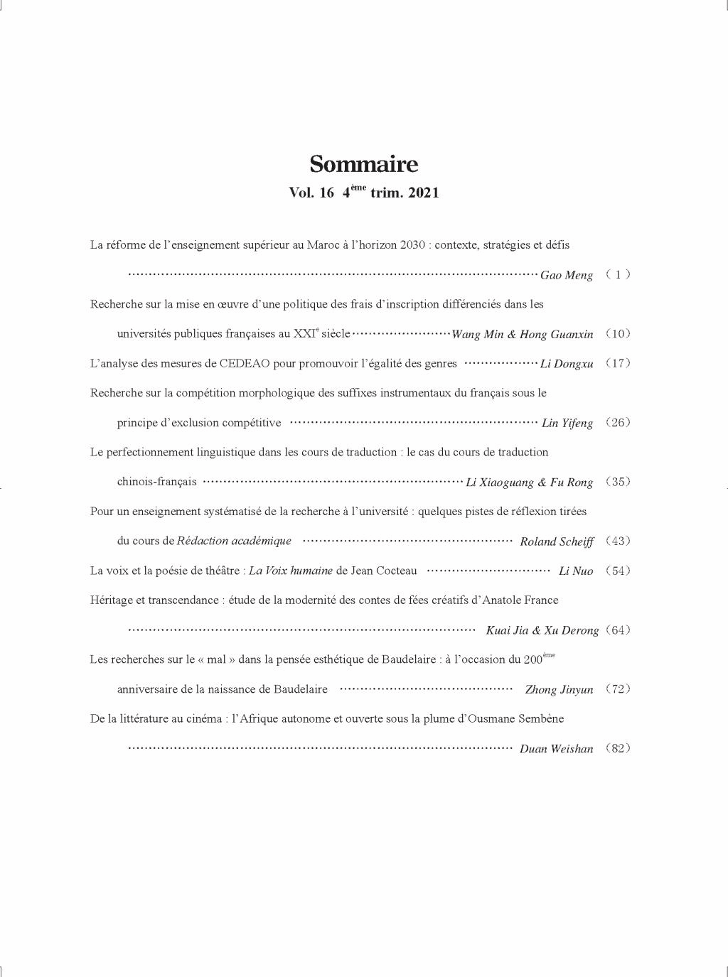 《法语国家与地区研究》2021年第4期 目录与摘要