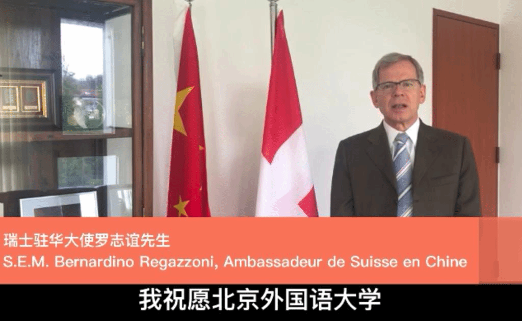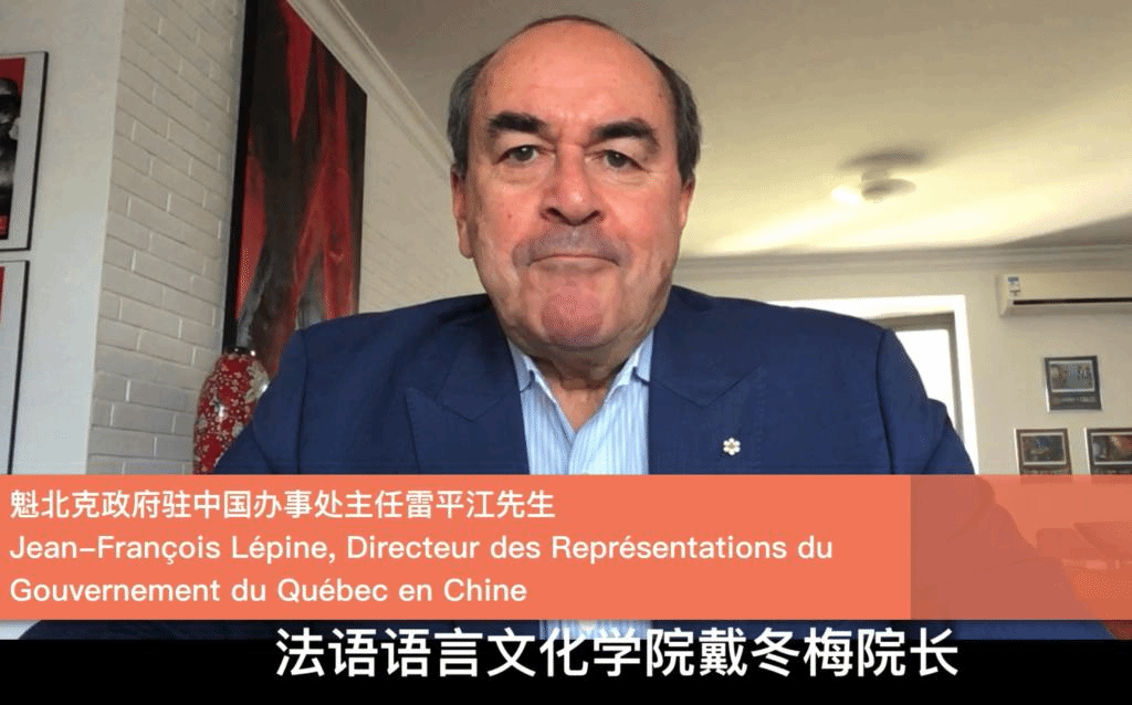 法国驻华大使、瑞士驻华大使、布基纳法索驻华大使、加拿大魁北克驻华代表、比利时瓦隆-布鲁塞尔大区驻华代表等在视频讲话中对法语语言文化学院院庆70周年表示热烈祝贺,并高度赞扬了我校及法语学院对中外文化交流所做的贡献,对与我校的进一步合作进行了展望。法国驻华大使在祝辞中赞扬了法国蓝皮书系列的影响力。