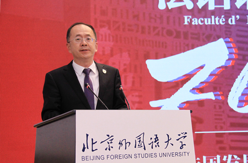 贾文键在致辞中代表学校对校友们回校表示欢迎,他充分肯定了法语学院的优秀教学传统,对法语学院校友们在各自岗位上所做的贡献表示赞赏,对法语学院所取得的既有成绩表示祝贺,勉励法语学院以70周年为起点,为学校、为社会做出更大贡献。同时,他对法国蓝皮书第三辑的顺利出版表示祝贺,肯定了其重要的学术价值和现实意义,希望该系列皮书不断增进中国各界对法国的了解,继续推动法国研究学科领域的发展。