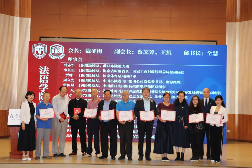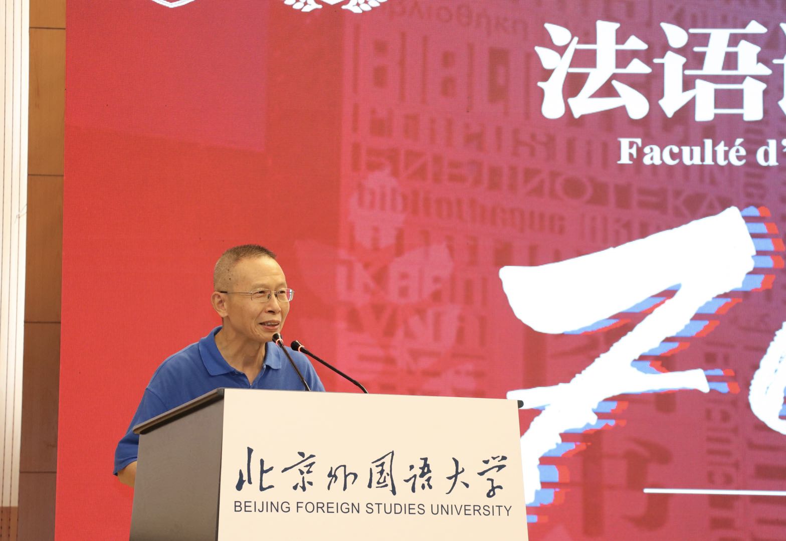 我校副校长贾文键、法语学院十余位退休教师代表、中国前驻刚果(金)和黎巴嫩共和国大使吴泽献、前驻布隆迪大使冯志军、前驻法国斯特拉斯堡总领事张国斌、国务院发展研究中心世界发展研究所原副所长和《法国发展报告》主编丁一凡、中国机械进出口集团公司原党委书记、副总经理周立先等校友代表、我校区域与全球治理高等研究院、宣传部、校友会等校内代表出席,多位驻华外交使节通过视频讲话表达了祝贺。