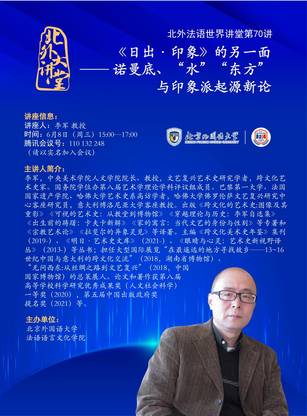 【讲座预告】北外法语世界讲堂第70讲——《日出·印象》的另一面——诺曼底、“水”、“东方”与印象派起源新论