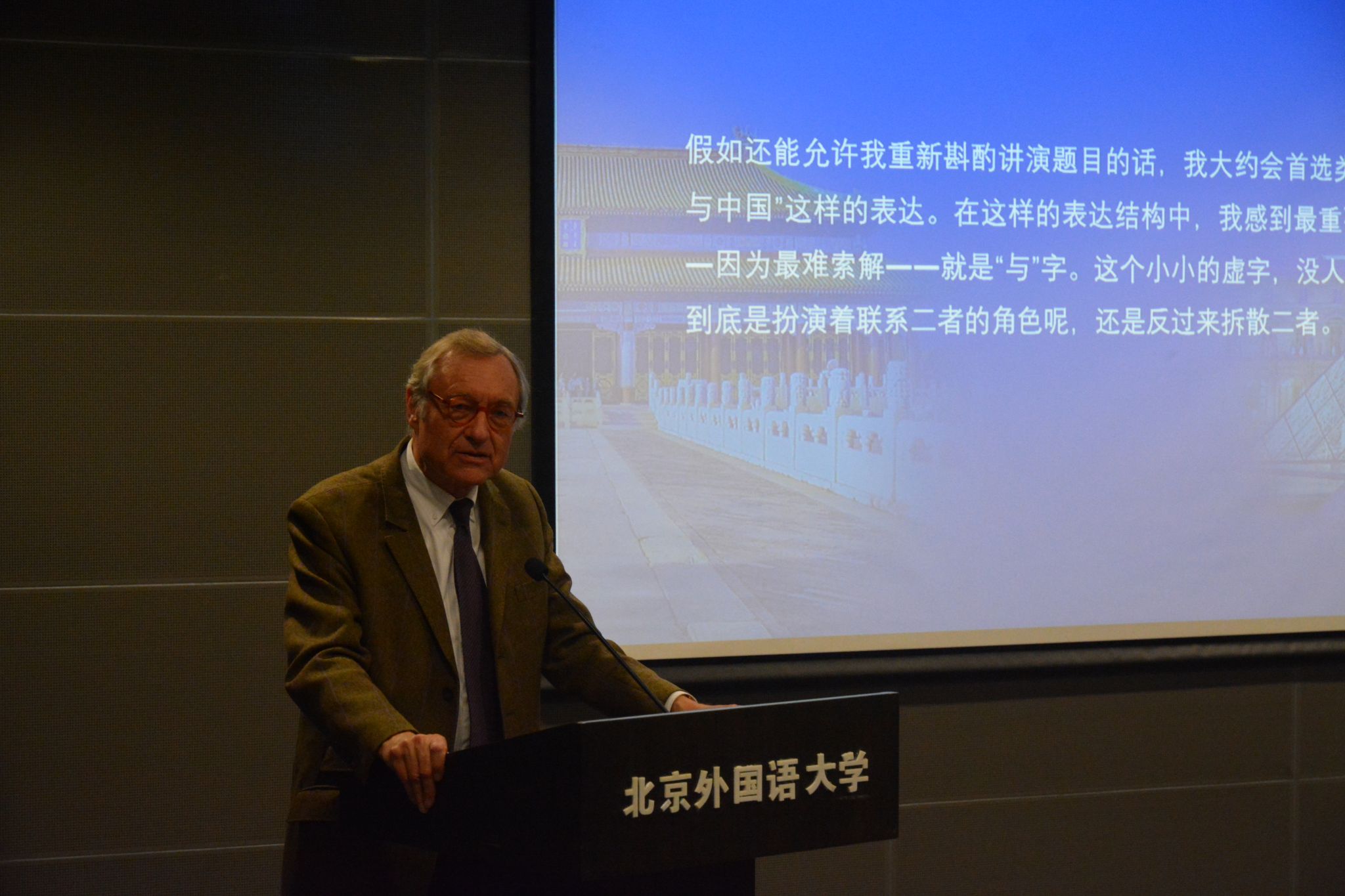 11月22日上午,法国巴黎索邦大学荣休教授杜梅(Christian Doumet)先生应邀来我校作了题为“法语里的中国:法国文学里的中国形象”的讲座。该讲座系“语言教学与文明互鉴——纪念中法建交60周年”国际研讨会暨第六届世界法语教师日主题培训活动的学术活动之一。