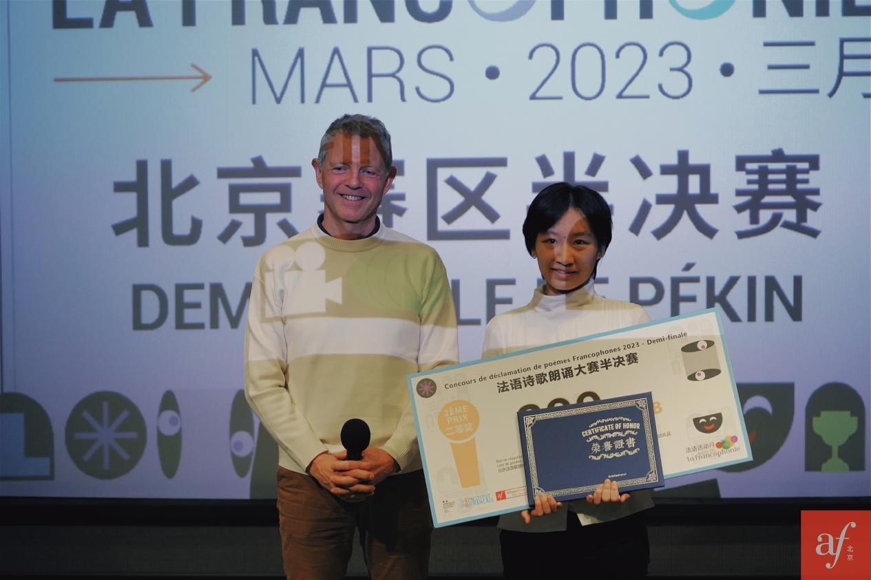 法语诗歌朗诵比赛是法语活动月“诗人之春”(Printemps des Poètes)的重头活动之一。其中,2023年北京赛区的半决赛于3月19日举行,并于日前公布了比赛结果。我院2020级本科生朱婧劼、刘雅齐同学分别荣获本次大赛北京赛区的亚军和季军。
