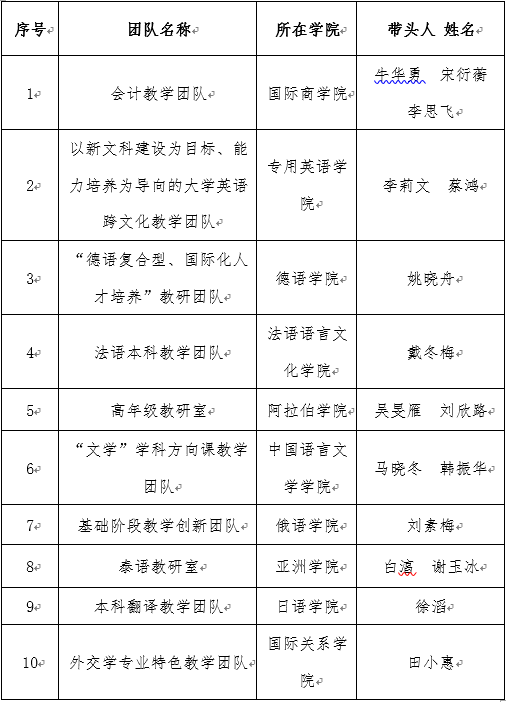 根据《太阳成集团tyc234cc[主页]网址本科教育教学奖励办法(试行)》,学校于今年10月份启动了2020年校级优秀基层教学团队评选工作,我院 “法语本科教学团队”参与此次评选。经过学院推荐、专家评审、学校党委常委会审议通过后,共有10个团队获此殊荣,“法语本科教学团队”位列其中,详情请见公示名单。
