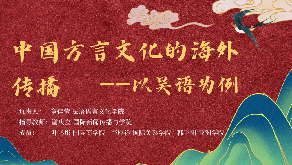 中国方言文化的海外传播——以吴语为例:吴语,作为中华大地语言宝库中的一颗璀璨明珠,不仅承载着深厚的历史底蕴和独特的地域色彩,更是吴地文化的核心载体和生动体现。本项目致力于通过外语这一沟通桥梁,将吴语的独特魅力及其背后的丰富文化底蕴呈现给全球观众。借助外语的精准叙述和深入阐释,不仅能展现吴语的音韵之美、词汇之丰富、语法之独特,更能深化国际社会对中国多元文化的理解和认知,让世界更全面地领略中华文化的博大精深。