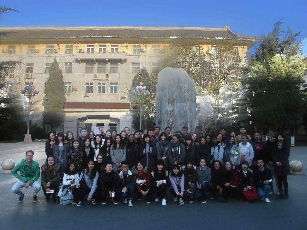 五点左右,参加法语角的全体同学到主楼前的校训碑处合影,相机的闪烁也为本次法语角画上了圆满的句号。