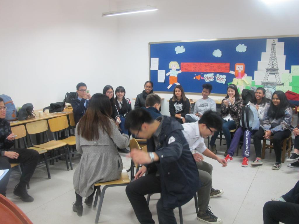 2016年3月13日下午三点,充满欢声笑语的法语角活动在主楼132、133教室举行。辅导员潘丹老师出席本次活动。法语角活动共有19位法国学生参加,他们与法语系学子欢聚一堂,共同度过了有趣而充实的两个小时。