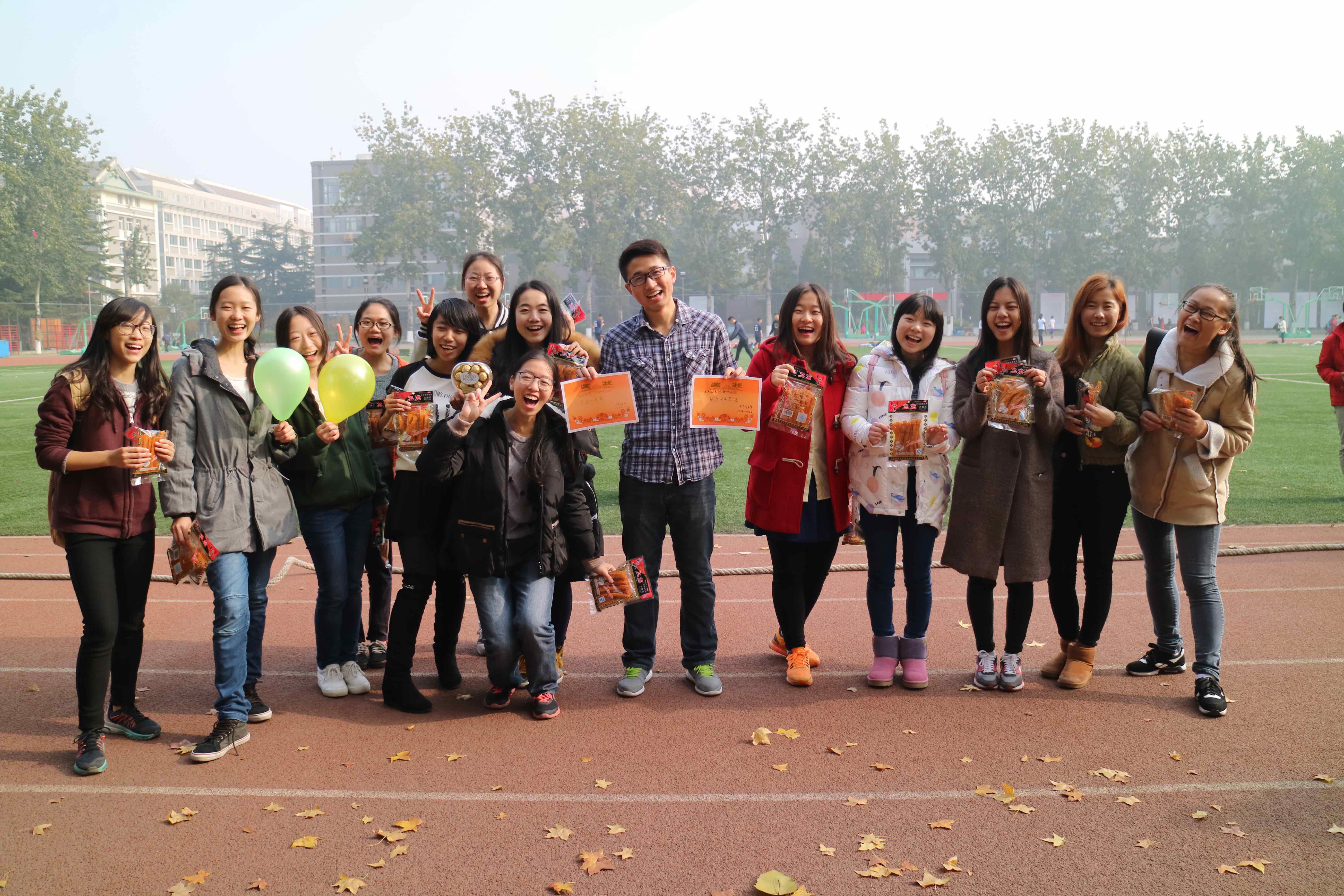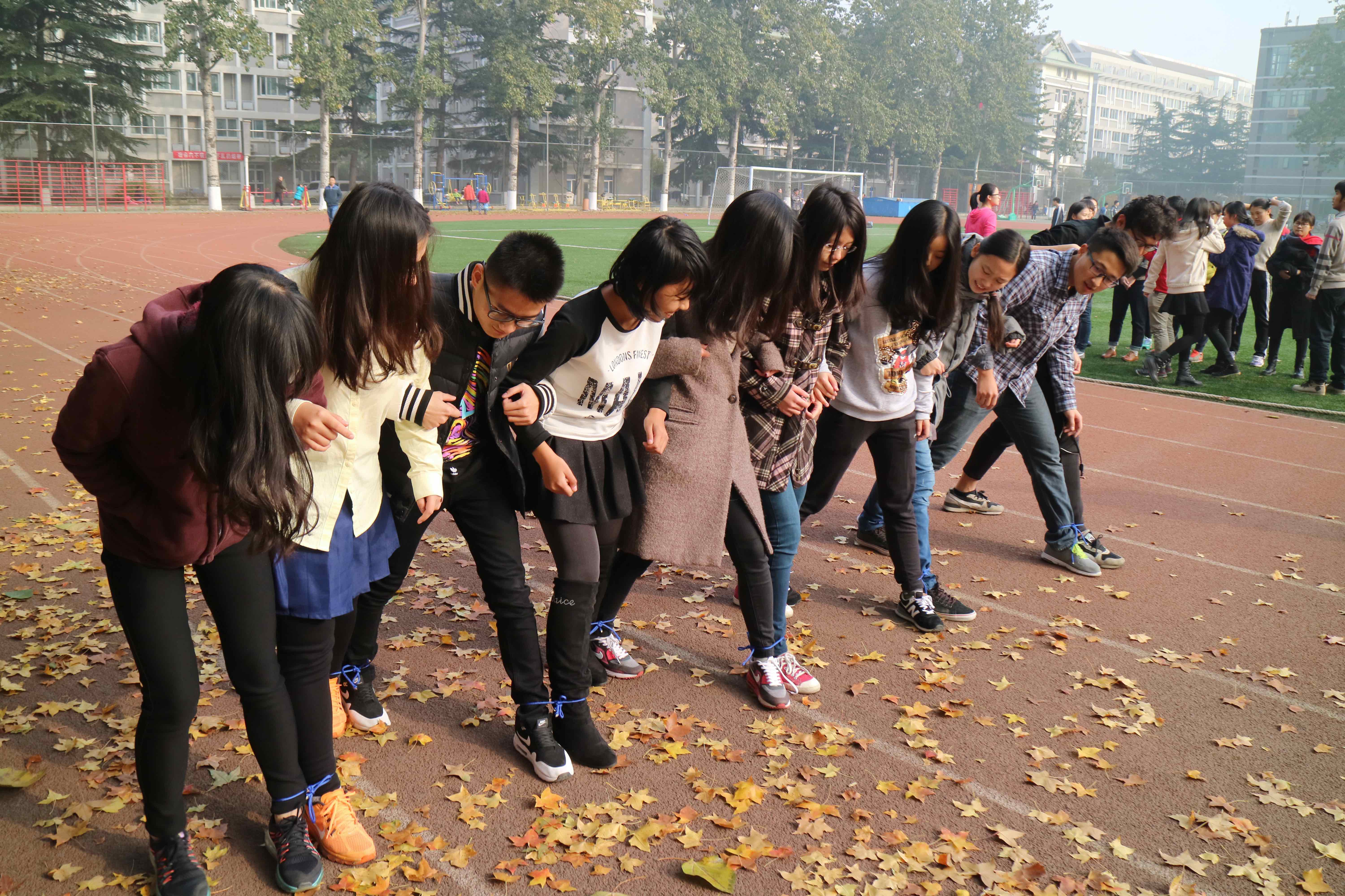 紧接着进行了十人十一足的团体赛,各系各班的同学们将脚绑在一起,喊着整齐的口号,不倦地练习着。虽然最后前三名都被德语系包揽,但重要的是各班同学互相帮助的团结氛围。大家合影留念,留下了珍贵的回忆。