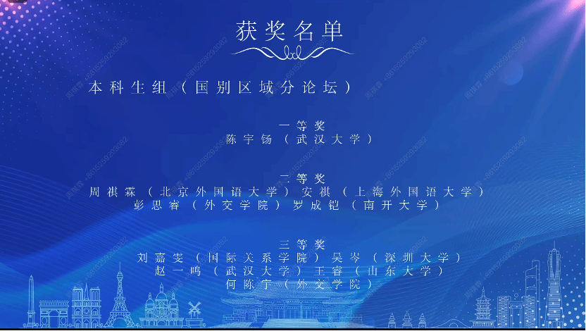 6月14日,第五届全国法语专业本科生学术论坛暨第三届全国中学生法语学术创新论坛于线上顺利举行。本次论坛由浙江大学外国语学院法语语言文化研究所和中国法语教学研究会联合主办,上海外语教育出版社赞助支持。我院2022级本科生周祺霖参与本次论坛并获得区域国别分论坛二等奖。