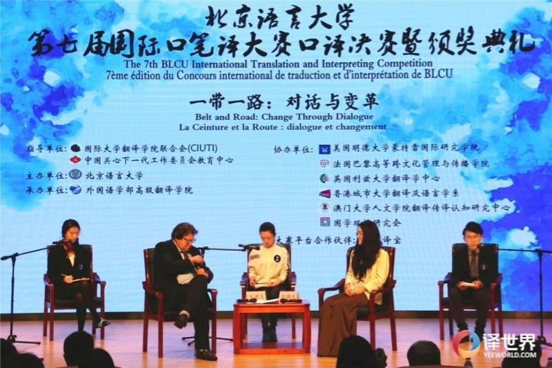大赛由国际大学翻译学院联合会(CIUTI)、中国关心下一代工作委员会教育中心特约指导,北京语言大学主办,外国语学部高级翻译学院承办,美国明德大学蒙特雷国际研究学院、法国巴黎高等跨文化管理与传播学院、英国利兹大学翻译学中心、香港城市大学翻译及语言学系、澳门大学人文学院翻译传译认知研究中心、国学双语研究会协办。