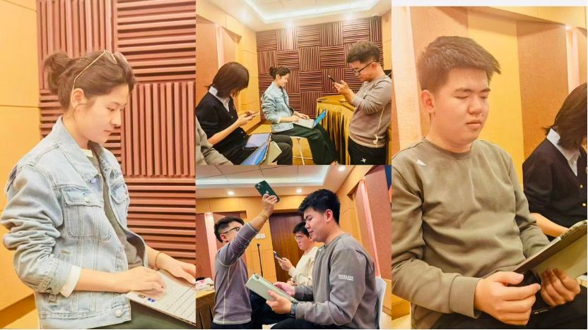 在多语种非遗创新领域,法语学院本科生党支部深度参与了国内首部“红楼”主题多语种皮影戏《红楼梦·宝黛共读西厢》法语版的创译与配音工作。面对古典文学意象转换的挑战,学生在专业教师指导下反复推敲,精准把握台词情感与表演节奏,成功完成全剧配音,为传统非遗艺术的国际化表达开辟了新途径,作品于2025年11月在海淀区大有书馆成功首演。